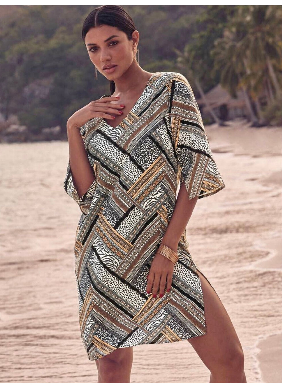 "Safari World" di Anita nella stampa che mixa animalier e motivi etnici, con effetto ottico snellente.