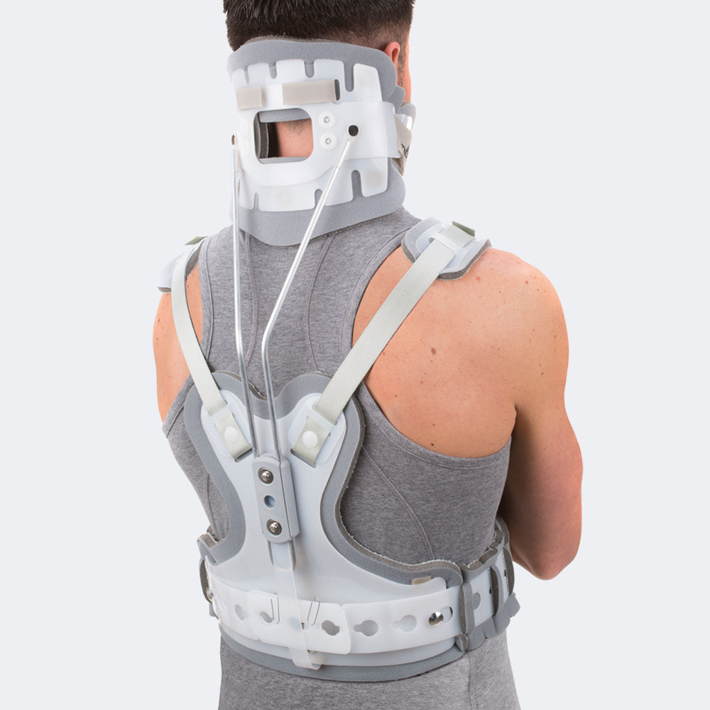 Supporto toracico e dorsale con rinforzi in lega leggera regolabili in altezza