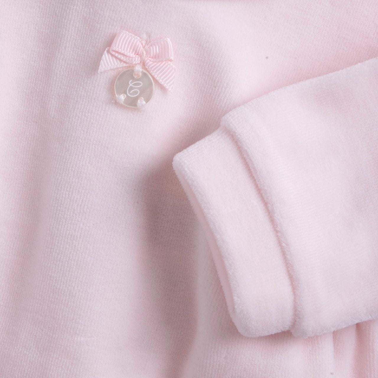 Fiocco e medaglietta effetto madreperla applicati