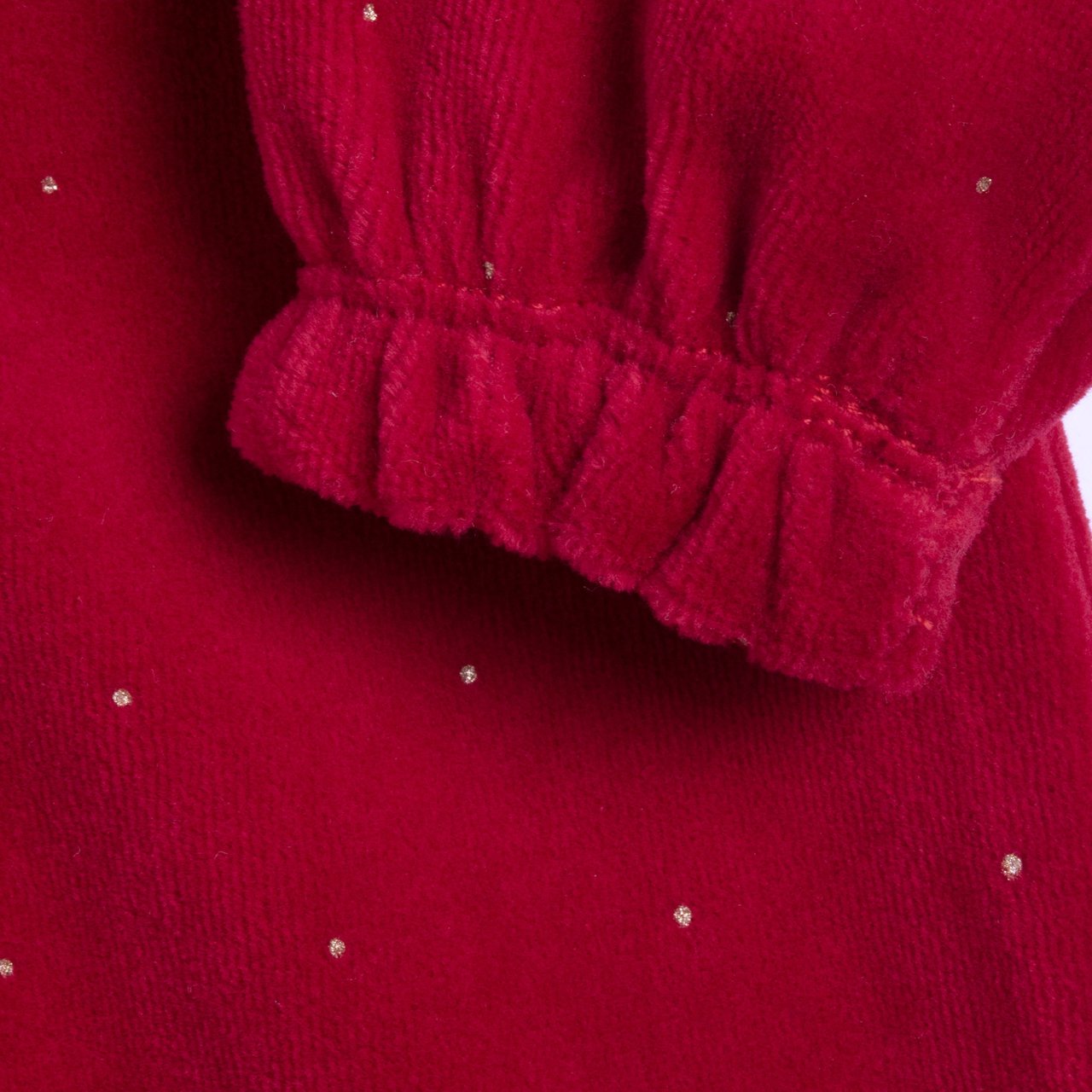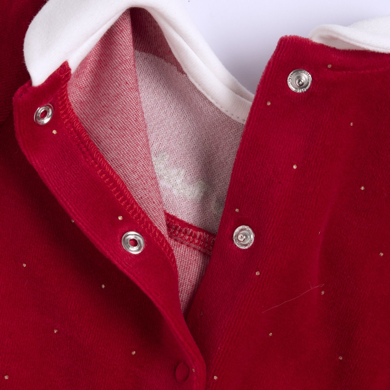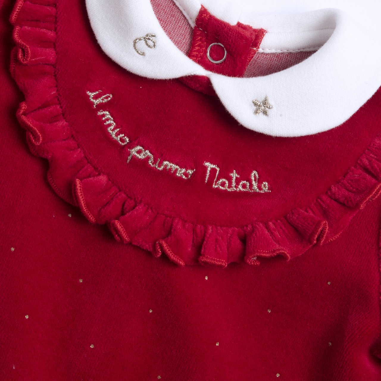 - Tutina in ciniglia stampa effetto glitter con colletto baby in cotone bianco collezione.