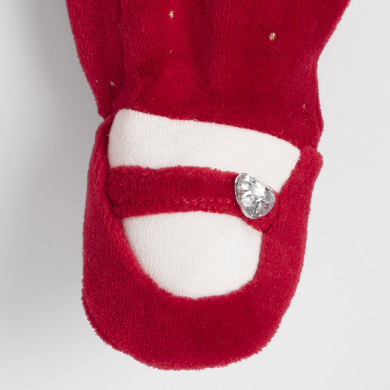 - Effetto scarpina ricamata con bottoncino gioiello