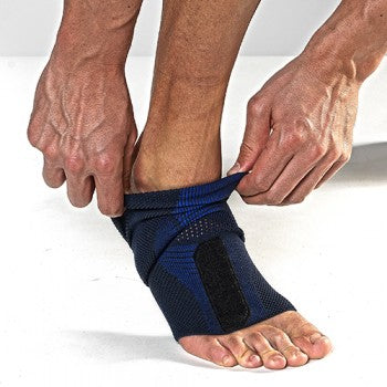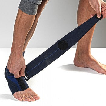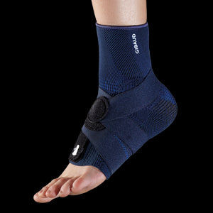 Infilare la cavigliera come un calzino in modo che il logo GIBAUD risulti sulla parte superiore della caviglia.