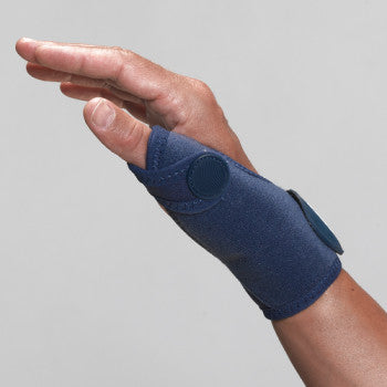 Ortesi per la stabilizzazione dell’articolazione trapezio-metacarpale in posizione funzionale del pollice, mantenendo la mobilità delle altre dita e la prensilità della mano. Steccaggio radiale rigido per l’immobilizzazione relativa del primo raggio della mano. Confortevole fodera imbottita. Fascia a livello del polso e linguetta a livello del pollice elastiche con chiusura a strappo.