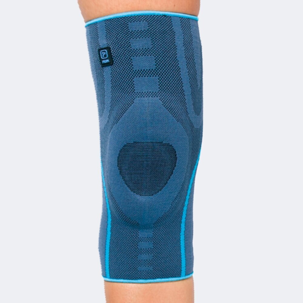 Ginocchiera tubolare in elastico con stabilizzatore rotuleo in silicone e stecche a spirale