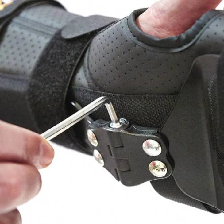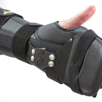 Stabilizzazione a 3 punti L3P (lock 3 points) costituita da: steccaggio rigido palmare articolato regolabile e bloccabile tramite brugola (chiave in dotazione), e due stecche dorsali semirigide.