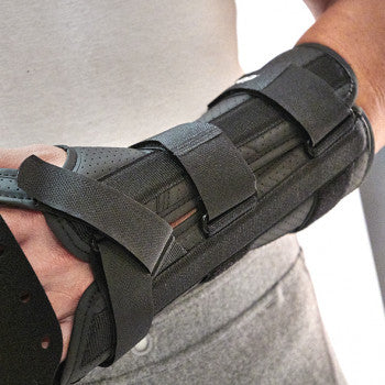 Chiusura assicurata da due cinghie prossimali sull’avambraccio e due distali in corrispondenza di polso e mano.