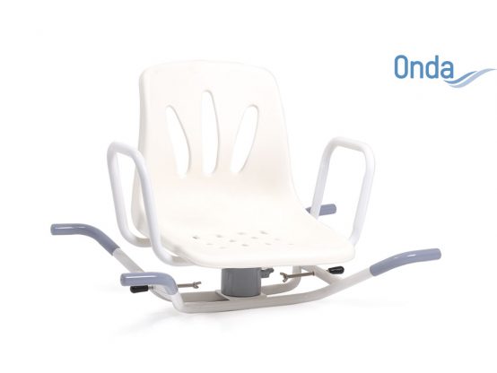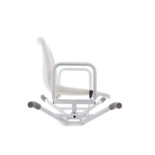 Sedia per vasca in acciaio verniciato bianco. Movimento in acciao inox seduta in PP (polipropilene). 2 battute laterali di sicurezza.