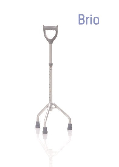 Tripode base larga con manico chiuso, impugnatura anatomica. Interamente realizzato in alluminio anodizzato. Puntali antiscivolo in gomma morbida.