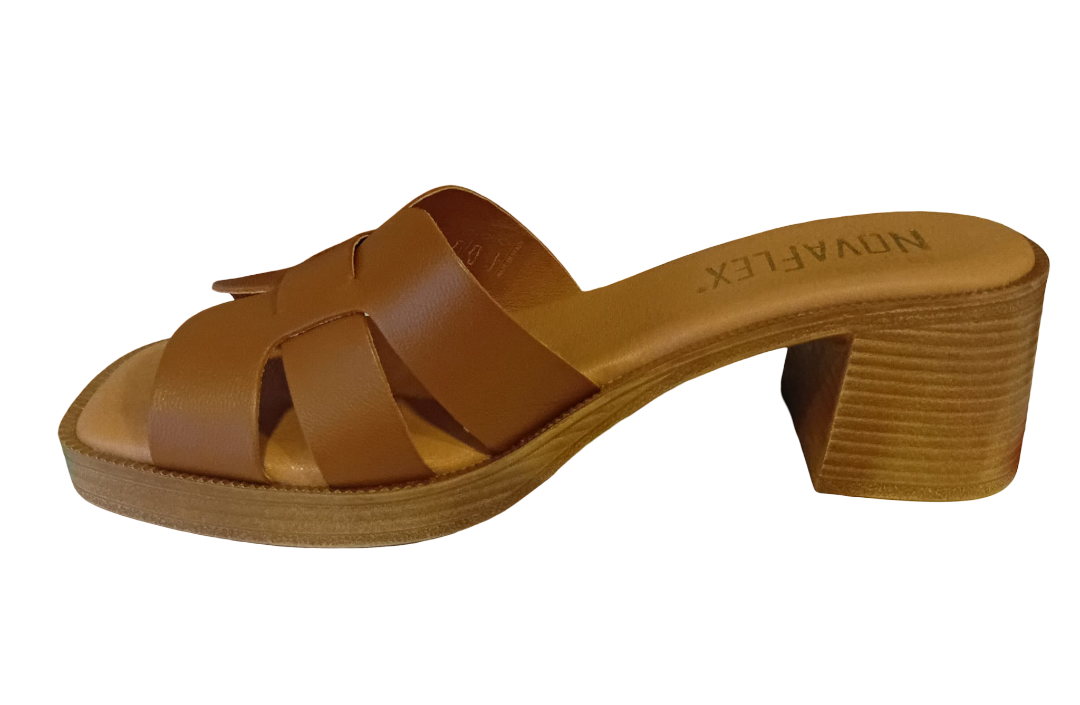 Novaflex Sandalo Incrociato Cuoio con tacco quadrato