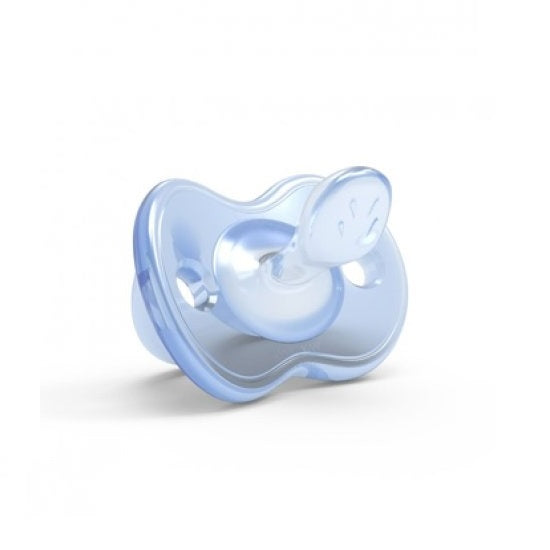 Comodo succhietto gommotto, realizzato interamente in silicone e BPA free. Colore rosa e colore blu, confezione da 1pz, adatto da 0 a 6 mesi!
