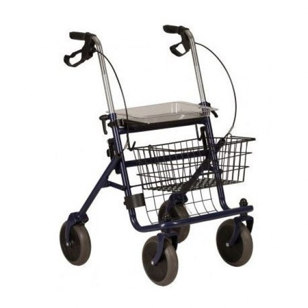 Il Rollator pieghevole con quattro ruote da cm. 20 di diametro e cm. 5 di spessore, le due anteriori piroettanti.